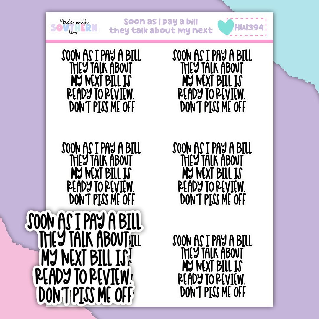 HW394 | SOON AS I PAY A BILL THEY TALK ABOUT MY NEXT