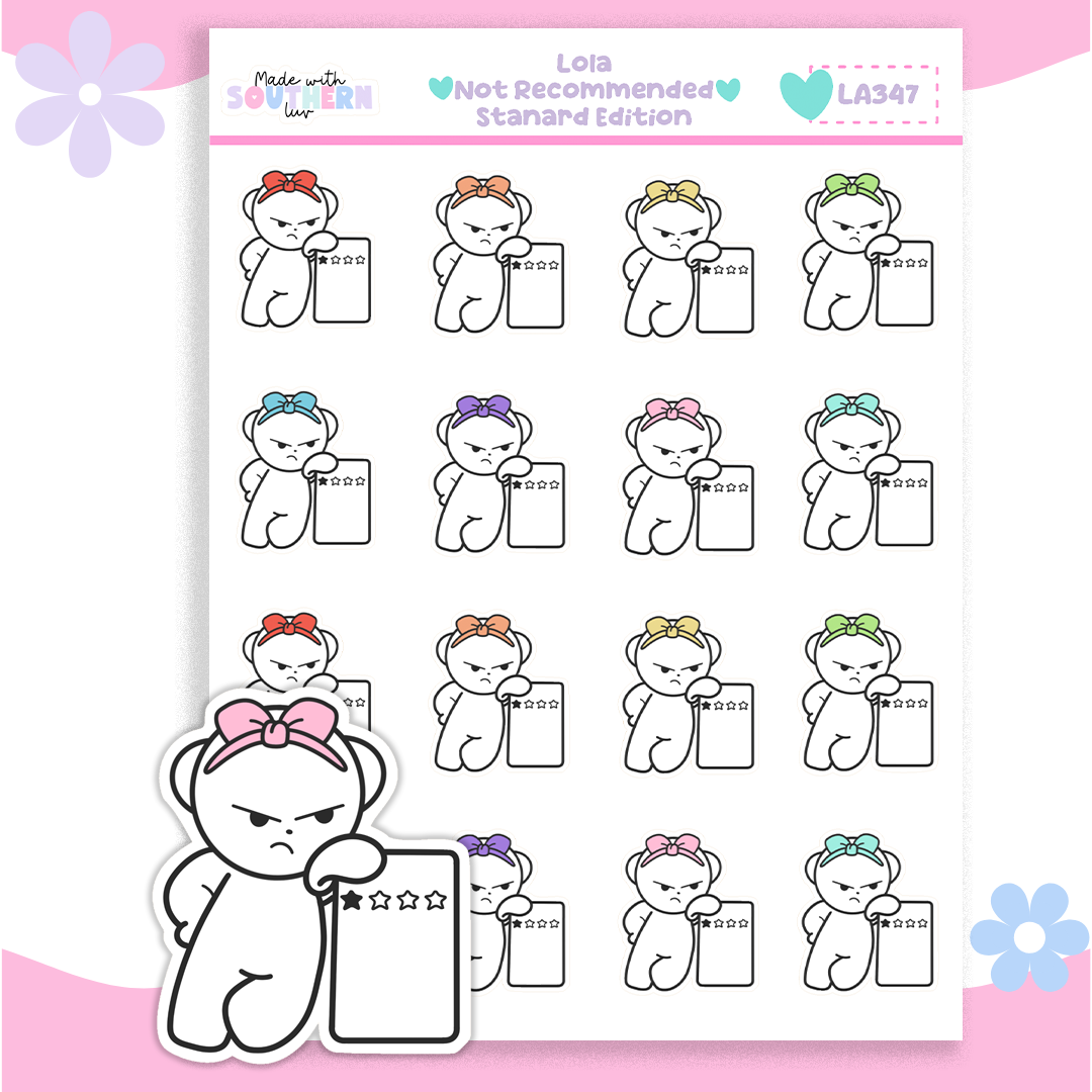 Lola Not Recommended – Standard Edition captures that blunt review energy with a softer color palette. She’s holding her rating board and absolutely not impressed.